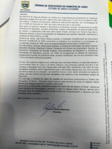 A Câmara de Vereadores de Lages prestou homenagem à Ordem dos Advogados do Brasil – Seccional Santa Catarina – OAB/SC, pela instituição da medalha Nereu Ramos.